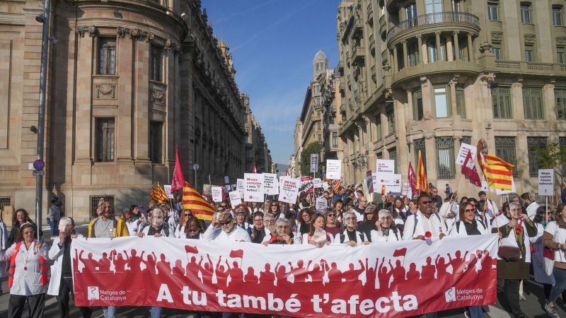 Uns 500 metges s'han manifestat aquest dimecres a Barcelona durant el primer dia de vaga de facultatius, convocada a Catalunya per Metges de Catalunya (MC), per reclamar un conveni i un espai propi de negociació sobre l'Estatut Marc.