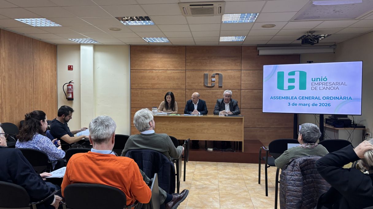 La Unió Empresarial de l'Anoia (UEA) ha celebrado este martes 3 de marzo la Asamblea General Ordinaria de socios, un encuentro que ha puesto de manifiesto la solidez de la entidad, el dinamismo del tejido empresarial de la Anoia, su fuerza de lobby y representatividad, y la voluntad compartida de continuar avanzando en competitividad y cohesión territorial. La Asamblea, que ha contado con la participación y asistencia de empresas asociadas a la entidad empresarial, se ha desarrollado en un clima de consenso e implicación. El acta de la sesión anterior se ha aprobado por unanimidad, evidenciando el apoyo a la gestión realizada.